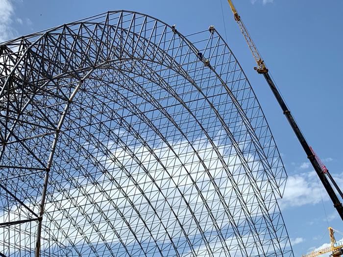(2)网架加工前应对现场尺寸进行复测,确认无误后方可进行加工、安装;网架制作、运输、安装应遵守《空间网格结构技术规程》JGJ7-2010、《钢网架赤壁螺栓球节点》JG/T 10-2009、《钢网架赤壁螺栓球节点用高强度螺栓》 GB/T 16939-2016、《赤壁钢结构赤壁工程赤壁施工规范》 GB50755-2012、《赤壁钢结构赤壁工程施工质量验收标准》 GB50205-2020。